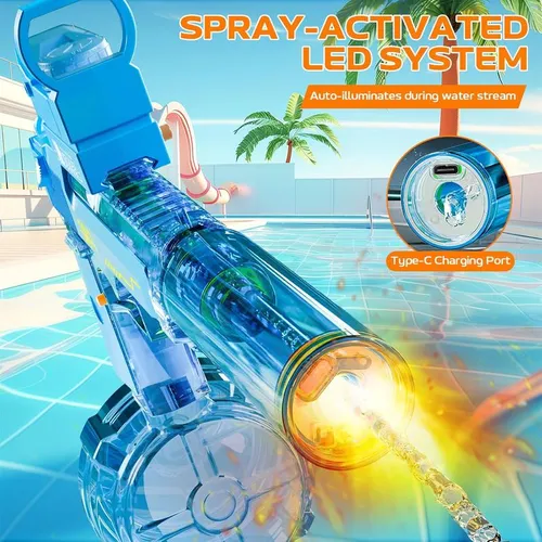 Enjoy an exhilarating water fight with our electric blaster that combines performance and fun. The special muzzle flash effect adds a realistic touch, making your water battles even more thrilling!