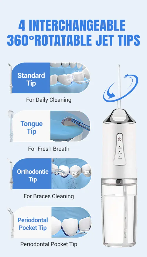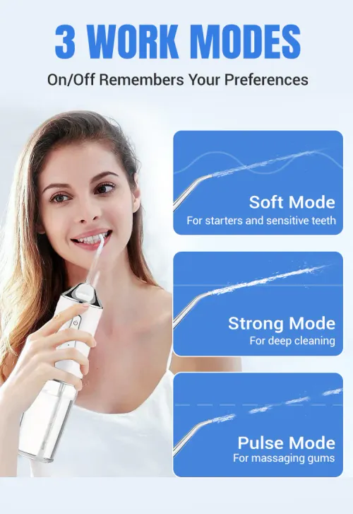 - Deep Clean Every Crevice🔍: High - pressure water jet (adjustable 3 modes: gentle, normal, strong) blasts away plaque, food, and bacteria from gaps, braces, and implants. 4 interchangeable nozzles target different areas—perfect for orthodontic care or hard - to - reach spots.