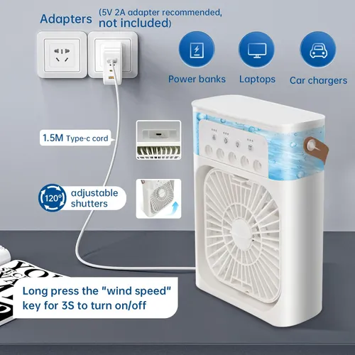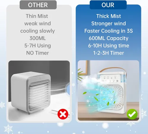 ✅ Personal Air Cooler & Humidifier – It’s not just a personal air cooler, but also an air humidifier. You can use this small evaporative air cooler all year round – cool down in hot summers, and humidify the air in dry autumns and winters. A full tank of water enables continuous misting for 2.5 - 12 hours (depending on the speed).