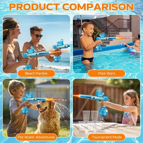 Enjoy an exhilarating water fight with our electric blaster that combines performance and fun. The special muzzle flash effect adds a realistic touch, making your water battles even more thrilling!