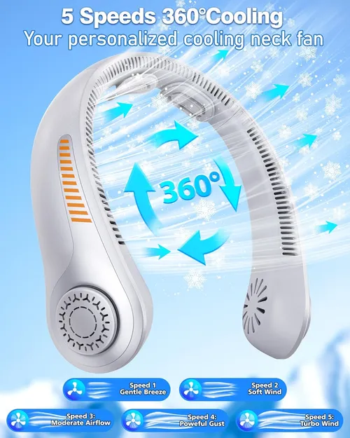 - Targeted Cooling ❄️: The portable neck fan wraps around your neck, delivering a 360° cooling breeze directly to the neck and surrounding areas. Its dual - turbine design ensures strong and continuous airflow, instantly relieving the sweltering heat, perfect for Ghana's hot climate.
